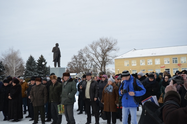 Несмотря на сильный для Ростовской области мороз в полдень на главной площади райцентра собралось более двух сотен куйбышан и гостей района, среди которых были и руководитель фракции КПРФ в Законодательном Собрании Ростовской области Бессонов Е.И., депутаты ЗакСобрания Карпенко В.М., Беляев И.Б. и Булгаков В.Г., генерал-лейтенант, бывший комендант Чечни Фоменко Г.П., ветераны войны и труда.