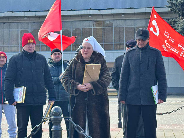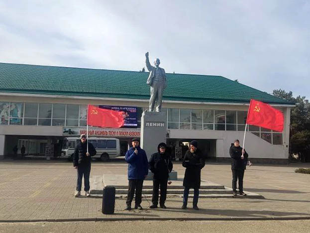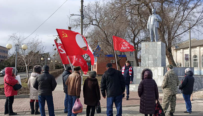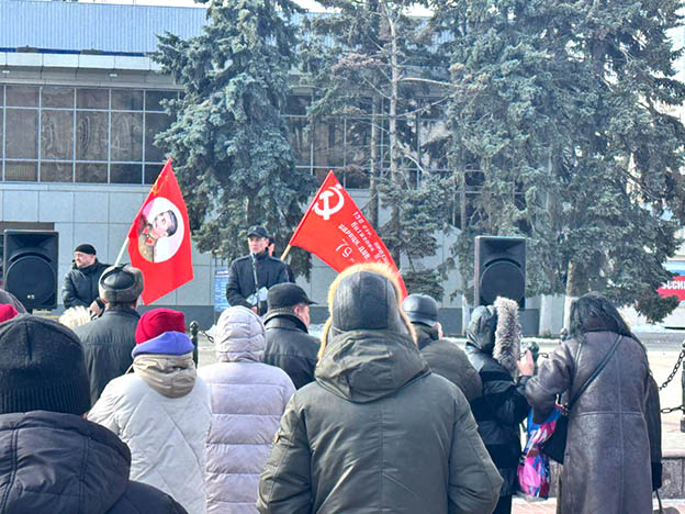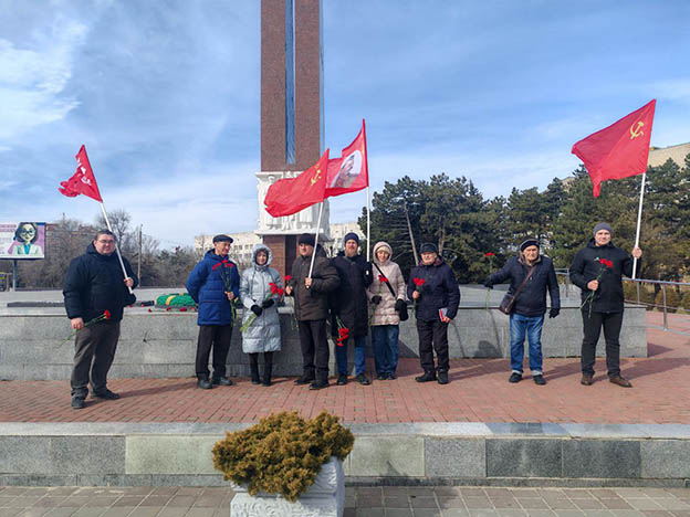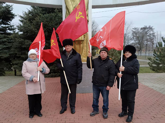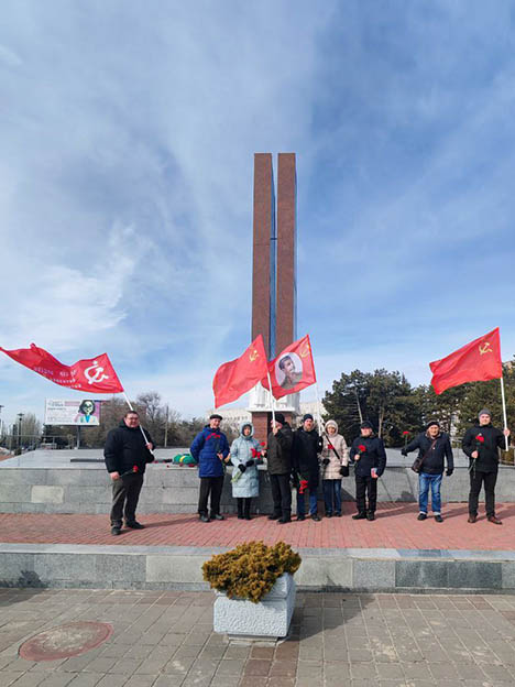 В Азове в преддверии дня рождения Рабоче-Крестьянской Красной армии и Военно-Морского флота 22 февраля на площади В.И. Ленина возле Городского дома культуры состоялся митинг, а также коммунисты возложили цветы к мемориалу воинам Великой Отечественной войны.