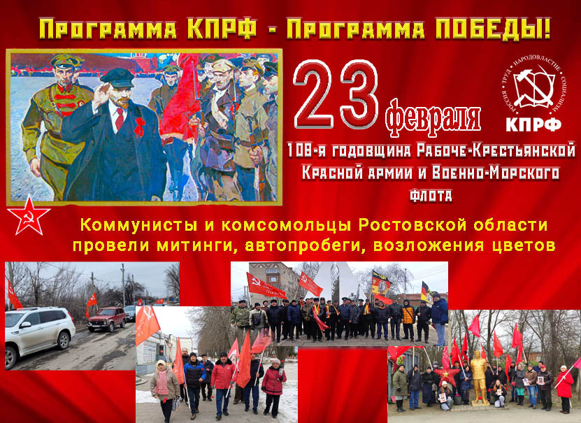 108-ю годовщину со дня рождения Рабоче-Крестьянской Красной армии и Военно-Морского флота торжественными мероприятиями отметили в городах и районных центрах Ростовской области местные отделения Коммунистической партии Российской Федерации.