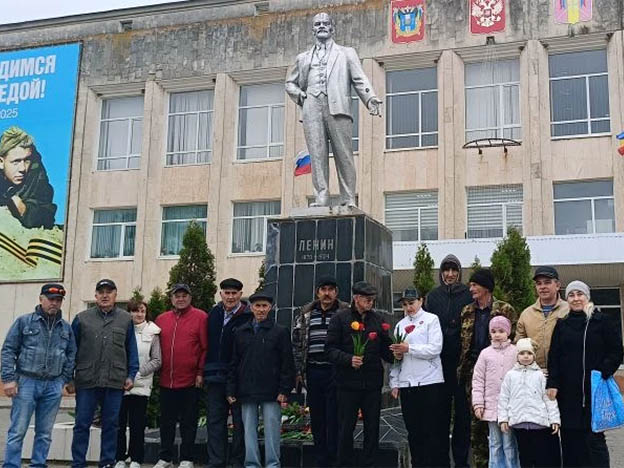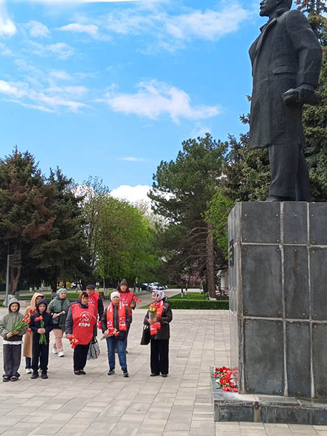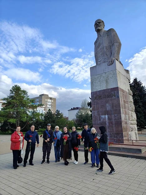 Собравшиеся почтили память Ленина, возложив цветы к его памятнику, выразив уважение и благодарность за его историческое наследие.