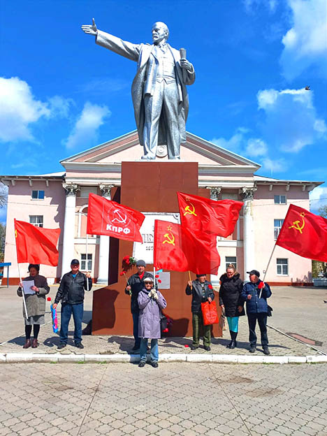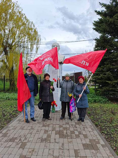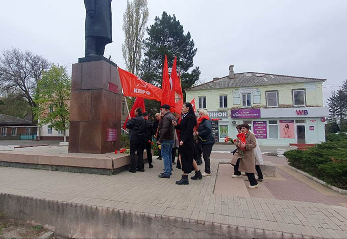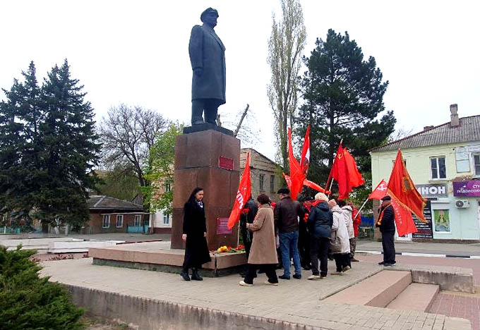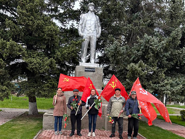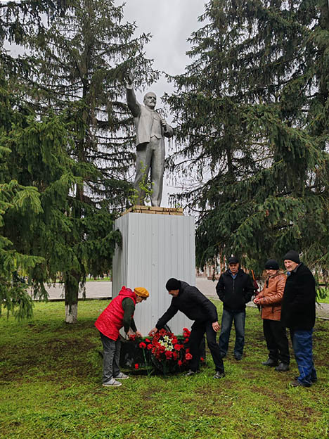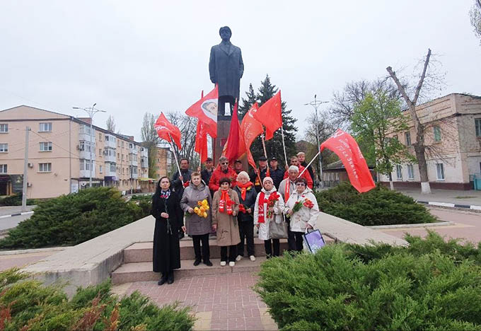 Коммунисты Цимлянского местного отделения, в честь 156-й годовшины со дня рождения Владимира Ильича Ленина, возложили живые цветы к памятникам Ленину в г. Цимлянске, ст. Маркинской, ст. Камышевской, ст. Калининской.
